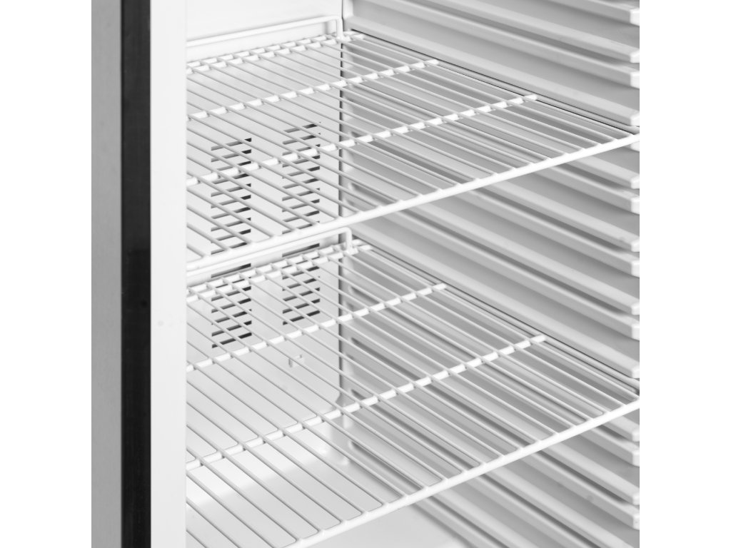 Rad mraziacich skríň s presklenými dverami UF-VSG je ventilovaná verzia našich mraziacich skríň s presklenými dverami z nehrdzavejúcej ocele. Dodáva sa v rôznych veľkostiach a ponúka veľkú flexibilitu vďaka nastaviteľným policiam. Účinný chladiaci systém s ventiláciou zabezpečuje rovnomernú teplotu v celej skrini. Teplotu možno nastaviť na jednoduchom digitálnom displeji termostatu. Rozmrazovanie prebieha automaticky.