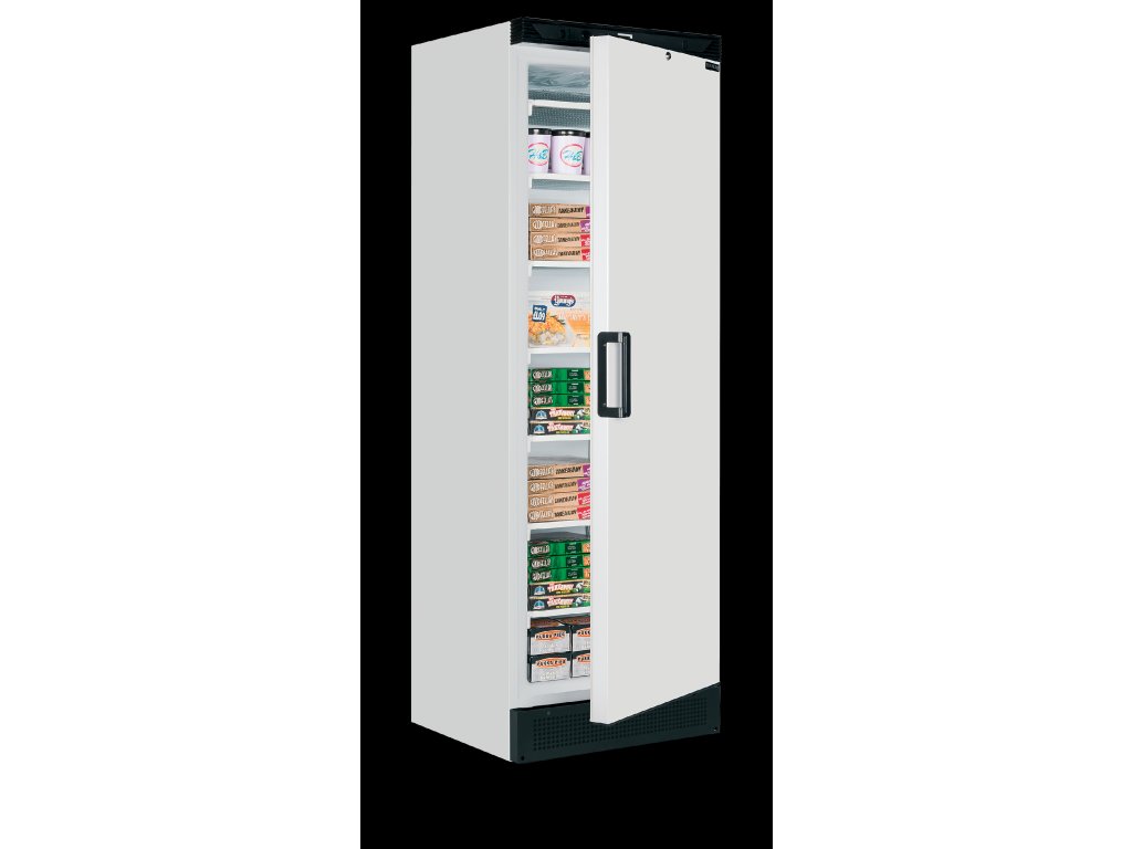 Táto mraznička má jednoduchý dizajn s bielo-čiernym exteriérom a bielym interiérom. Je možné meniť otváranie dverí, takže mrazničku ľahko prispôsobíte svojmu priestoru a svojim požiadavkám. Mraznička má statické chladenie a obsahuje 6 pevných políc. S týmto modelom získate veľký úložný priestor za výhodnú cenu.