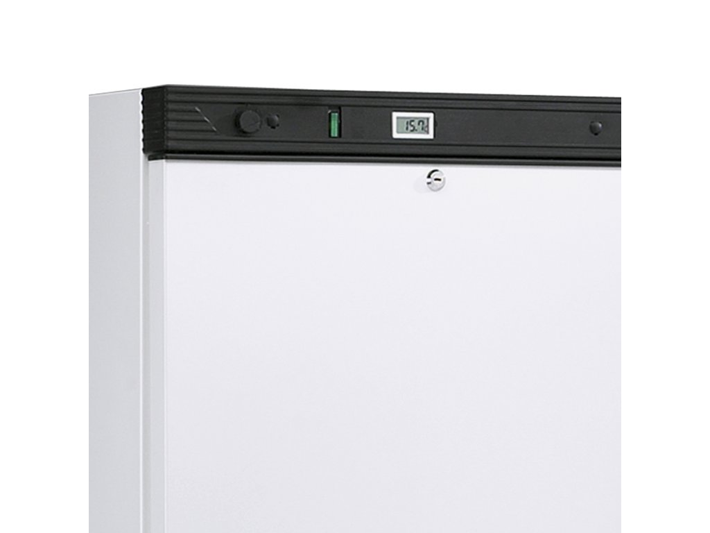 digitálny teplomer|pevné police na mrazenie|odtok vody pri odmrazovaní|nastaviteľné nožičky|statické chladenie|plné dvere, možno zmeniť otváranie