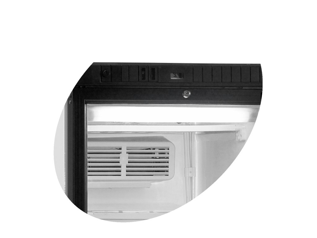energetická účinnosť vyššia o 20 %|vyhrievané presklené dvere|digitálny teplomer|vnútorné osvetlenie|pevné police|odtok vody pri odmrazovaní|nastaviteľné nožičky