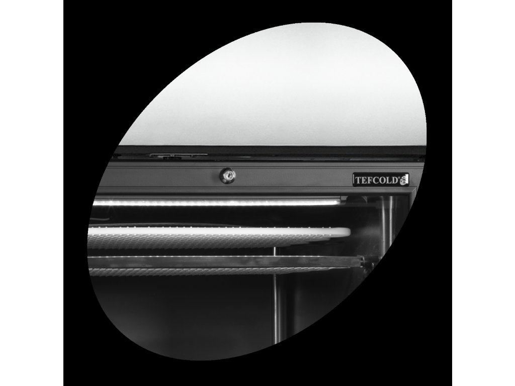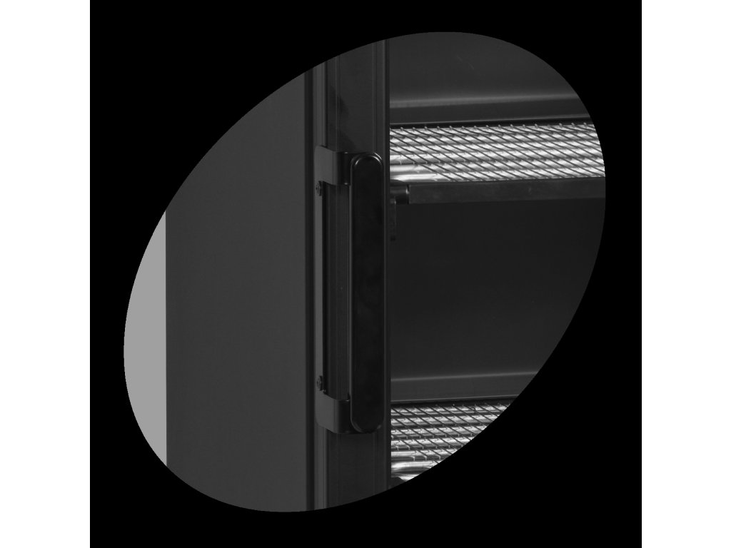 energetická účinnosť vyššia o 20 %|vynikajúca prezentácia výrobkov|čierne vnútro a vonkajšok|vyhrievané presklené dvere|svetelný reklamný panel|digitálny teplomer|vnútorné osvetlenie|pevné police|odtok vody pri odmrazovaní