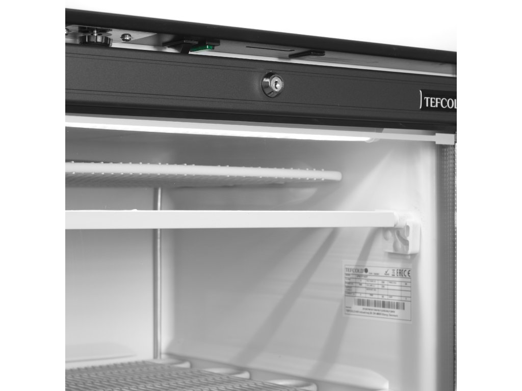 svetelný reklamný panel|vyhrievané sklo zabraňujúce kondenzácii|vnútorné LED osvetlenie s vypínačom|pevné police na mrazenie|odtok vody pri odmrazovaní|digitálny ukazovateľ teploty|nastaviteľné nožičky|zámok