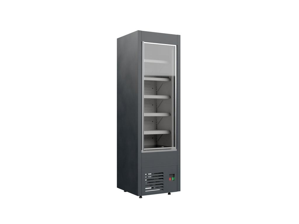 ventilované chladenie|krídlové dvere|dvojité sklo|vstavaný agregát|digitálny termostat|automatické odmrazovanie|automatické odparovanie kondenzátu|5 chladených nastaviteľných políc|plexi zábrana police - 2 horné rady|cenovkové lišty|chladená výstavná plocha|LED osvetlenie vitríny horné a bočné - farba biela studená|presklené izolačné alebo plné bočnice