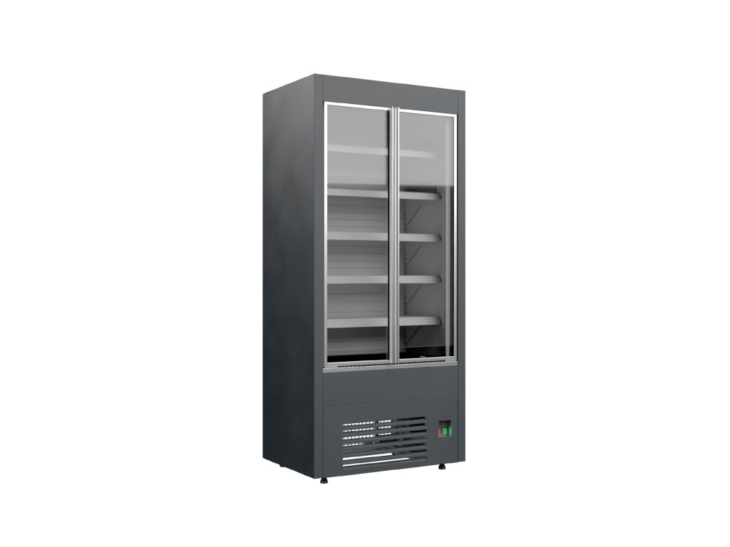 ventilované chladenie|krídlové dvere|dvojité sklo|vstavaný agregát|digitálny termostat|automatické odmrazovanie|automatické odparovanie kondenzátu|5 chladených nastaviteľných políc|plexi zábrana police - 2 horné rady|cenovkové lišty|chladená výstavná plocha|LED osvetlenie vitríny horné a bočné - farba biela studená|presklené izolačné alebo plné bočnice