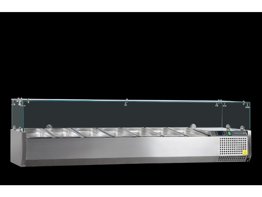 nehrdzavejúca oceľ|statické chladenie|presklené krytie na ochranu potravin|nastaviteľné nožičky|pre gastronádoby GN1/3 (nie sú súčasťou)